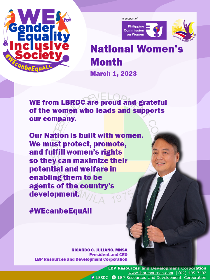 The LBP Resources and Development Corporation (LBRDC) is one with the National Government in making Gender Equality a reality.